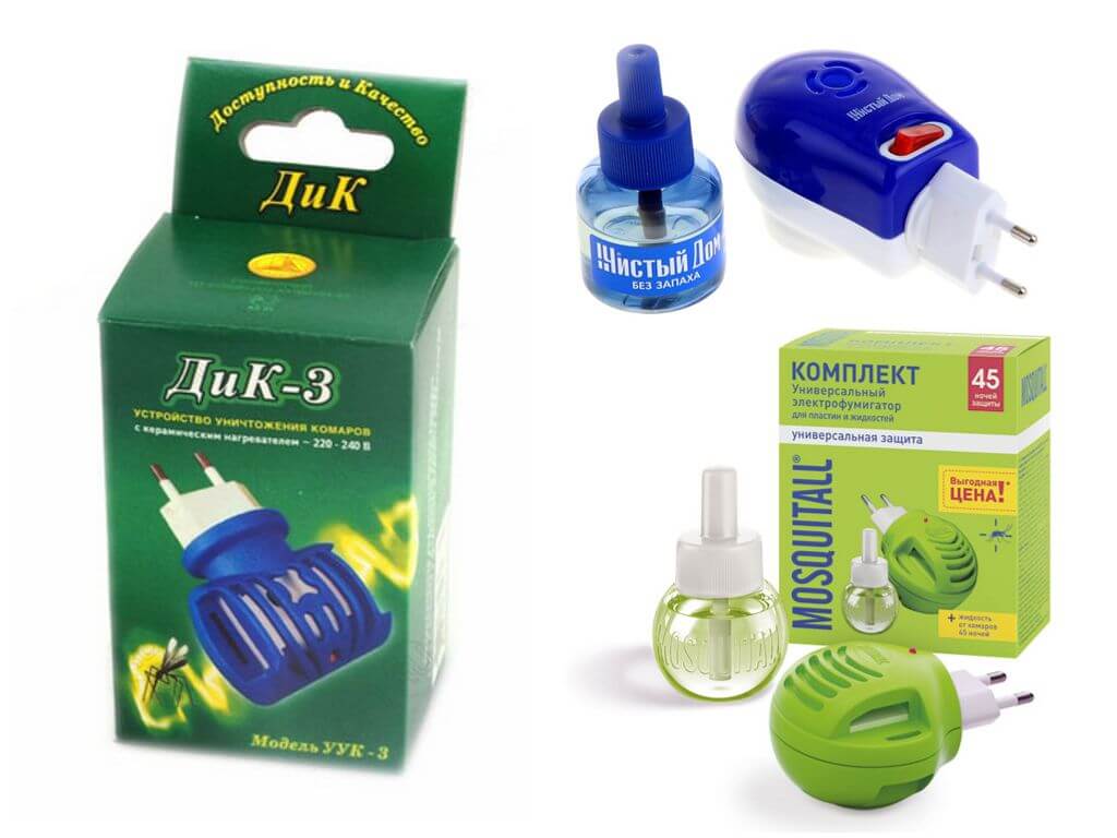 Фумигаторы — устройства, цель которых длительная борьба с насекомыми. Прибор включают в розетку и пластинка с инсектицидными веществами начинает нагреваться, наполняя воздух губительными для насекомого испарениями.