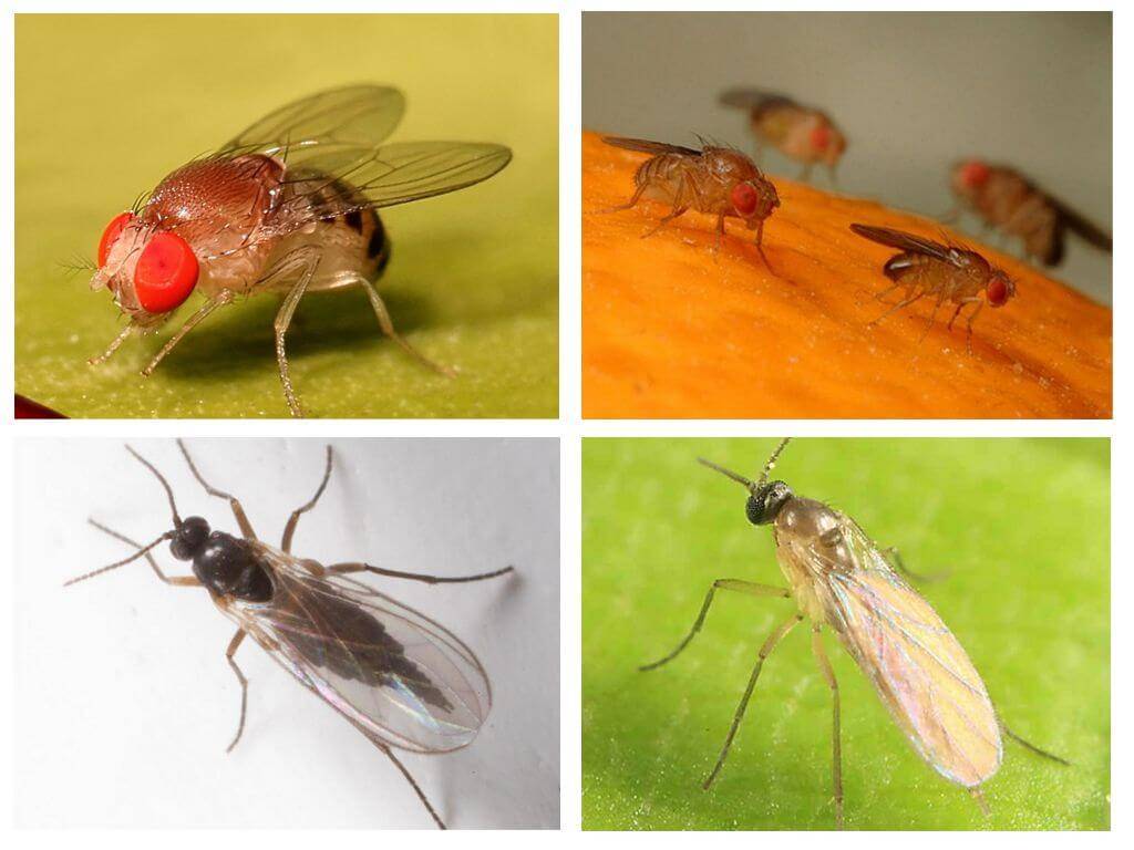 Мелкие насекомые появляются на фруктах, луке, могут поселиться в крупе или муке, в цветочных горшках или канализационных трубах. В зависимости от того, где обитает мошкара, выбирается метод для их уничтожения.