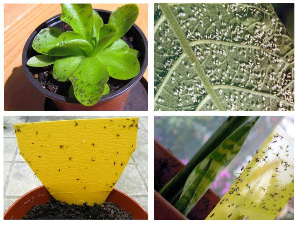 Черные мошки любят влагу, поэтому очень важно следить за умеренным поливом растений. Зеленый питомец может пострадать от личинок сциарид, которые любят уничтожать корни