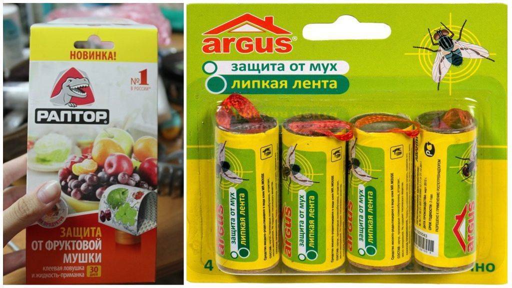 Прилавки магазинов изобилуют различными противомошковыми средствами. Их недостаток – синтетический состав, который часто приводит к аллергическим реакциям домочадцев. Желательно избежать негативных последствий, покинув помещение на период протравки мошек. Популярными средствами от фруктовой мошки считаются: «Раптор», «Аэроксон». Горшочную мошку хорошо изводить «Актарой» или «Громом-2».