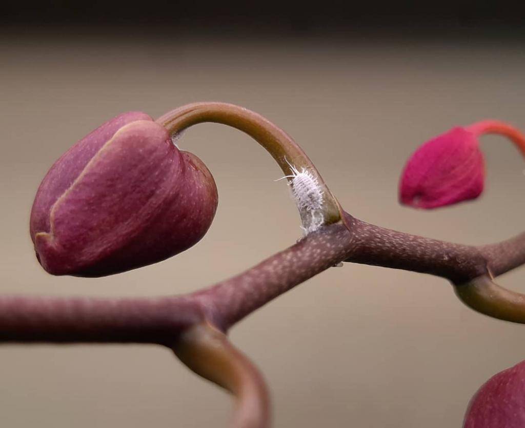 Первые признаки появления на орхидеях мучнистого червеца ошибочно принимают за развитие грибкового заболевания или плесени. На отдельных участках растения появляются светло-пепельные комочки, напоминающие вату.