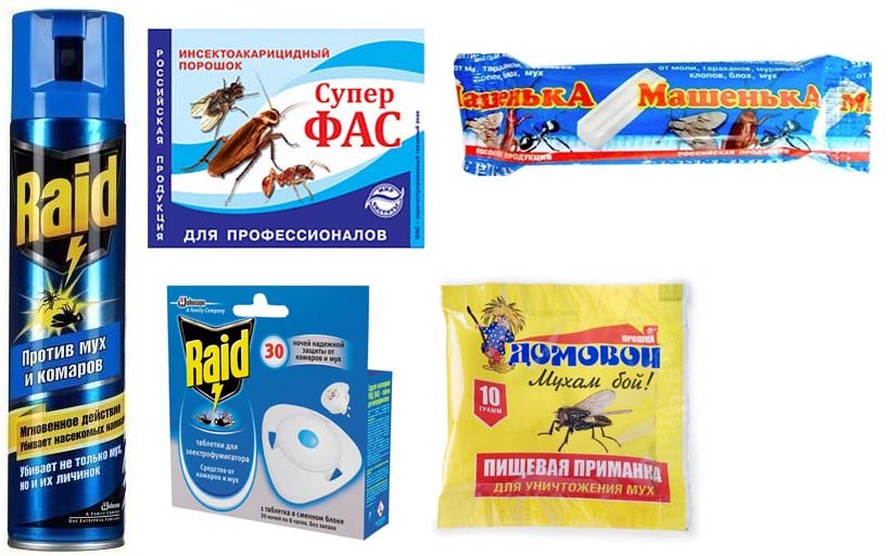 Подобные вещества помогут человеку бороться не только с мухами, но и личинками. Одна распыленная капля по большой поверхности гарантирует эффективность на протяжении 5-6 месяцев. Средства можно использовать практически в любых помещениях, в том числе на кухне и в детской комнате, так как там содержится минимум токсичных и вредных веществ.