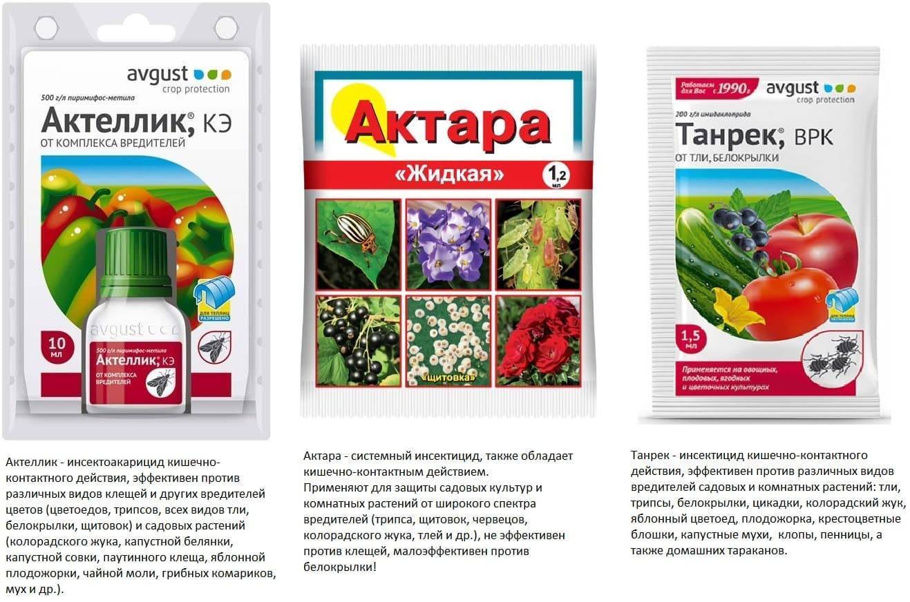 - актара — один из самых популярных препаратов против вредителей. Если растение не высокое (меньше 30 см), то раствором актары можно пролить грунт. В этом случае корневая система, впитав инсектицид, распространит его по всему растению. После этого цветок станет ядовитым для паразитов;