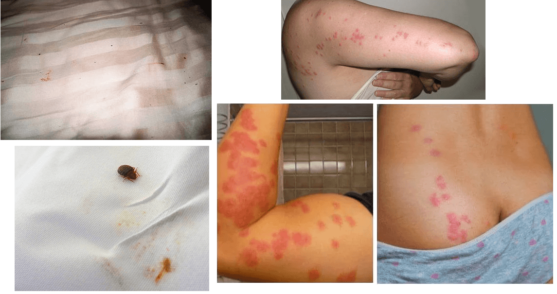 Основной признак появившихся в доме клопов – испачканная мелкими кровяными точками простыня и наличие зудящих укусов на теле. Днем обнаружить насекомое сложно, клопы чаще всего выходят из укрытий ночью, когда жертва лежит в постели. Но особи, обитающие в мебели, могут укусить спокойно лежащего или сидящего человека и днем.