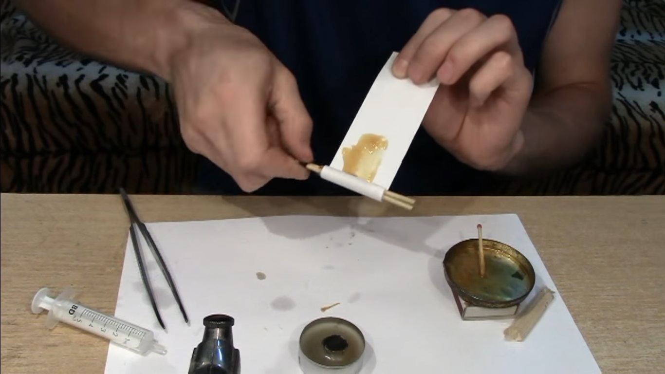 Принцип приготовления мало отличается от смеси с канифолью. Смолу и воск растапливают на водяной бане, добавляют остальные ингредиенты, перемешивают. Горячей смесью покрывают подготовленные бумажные полоски.
