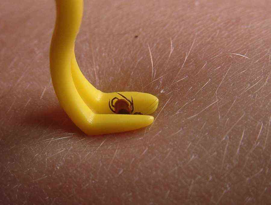 Держите клеща перпендикулярно коже. Медленно вытяните клеща кверху, стараясь, чтобы его хоботок или головка не остались в коже на месте укуса.