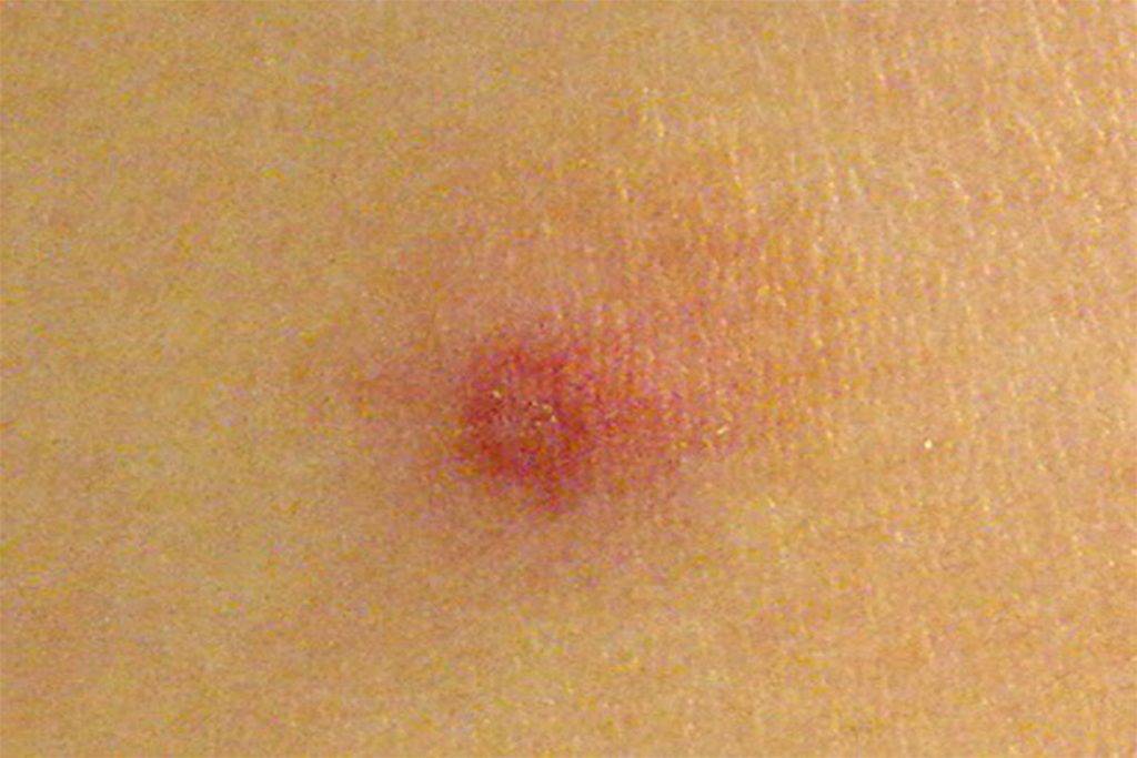 Если нападает небольшой паразит, размеры пораженного участка будут небольшими, могут напоминать красную точку. Однако чаще всего наблюдаются более сильные последствия. Это обусловлено тем, что на человека нападают более крупные особи, при погружении ротового аппарата и части головы эпидермис достаточно сильно травмируется.