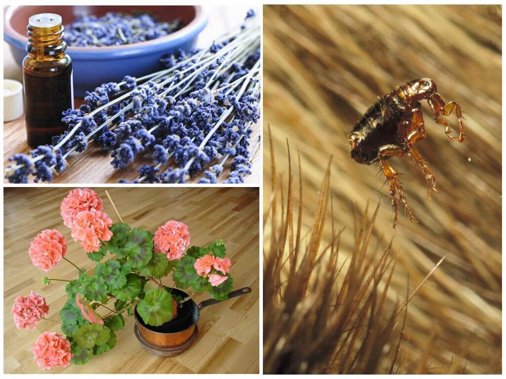 Для повышения эффективности лаванду сочетают с геранью. Понадобится 40 г каждого зелья. Заливают 1 л кипяченой воды, настаивают сутки. Используют для обработки шерсти, втирают в кожу. Опрыскивают коврики, матрацы, размещают салфетку, обработанную настойкой, в домике питомцев.