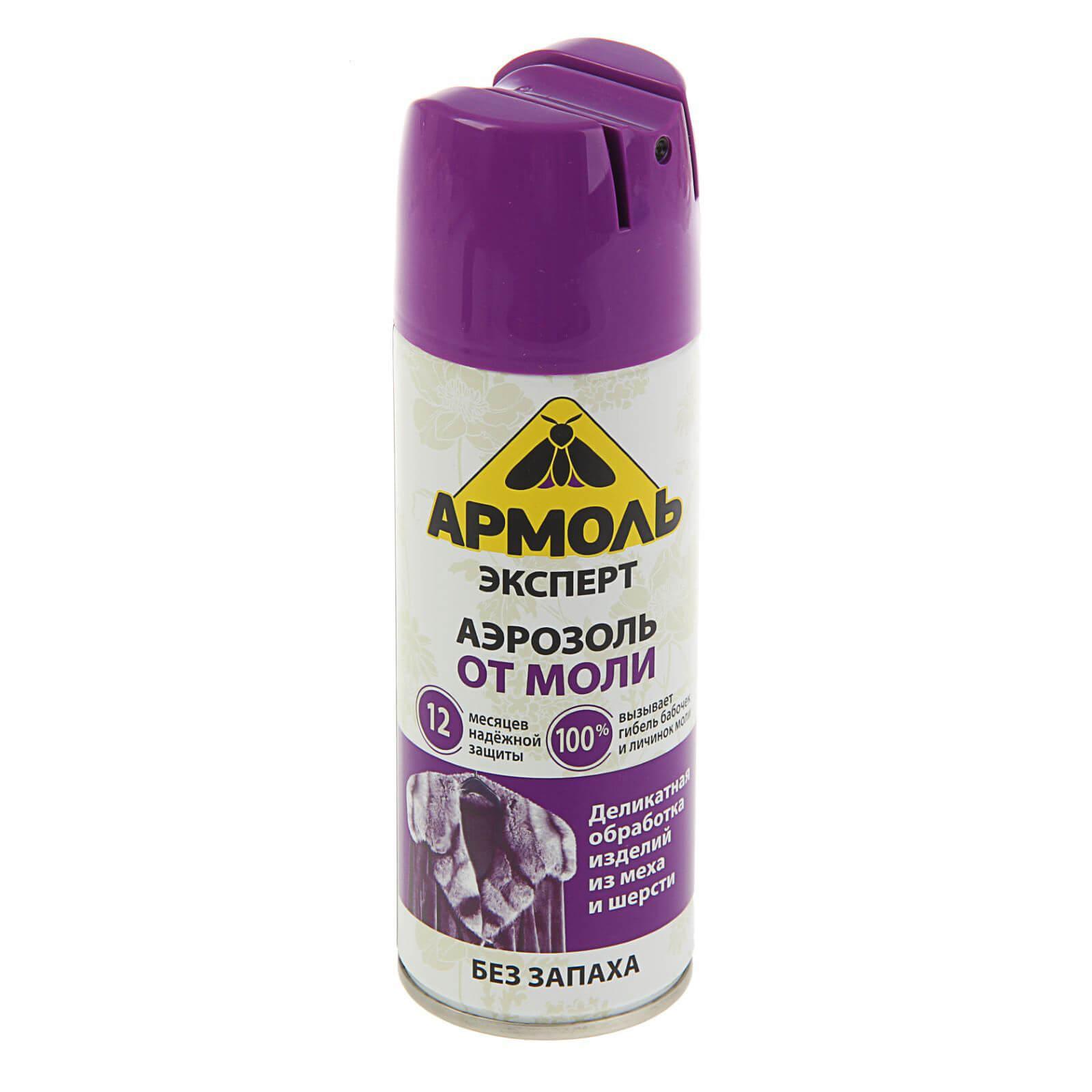 - аэрозоли и растворы для распыления. Некоторые из них обладают контактным действием, вызывают немедленную гибель, другие – проникают в дыхательные пути гусениц, после чего потомство умирает. Наиболее эффективны аэрозоли «Антимоль», «Эксперт», «Раптор», «Москитон»;