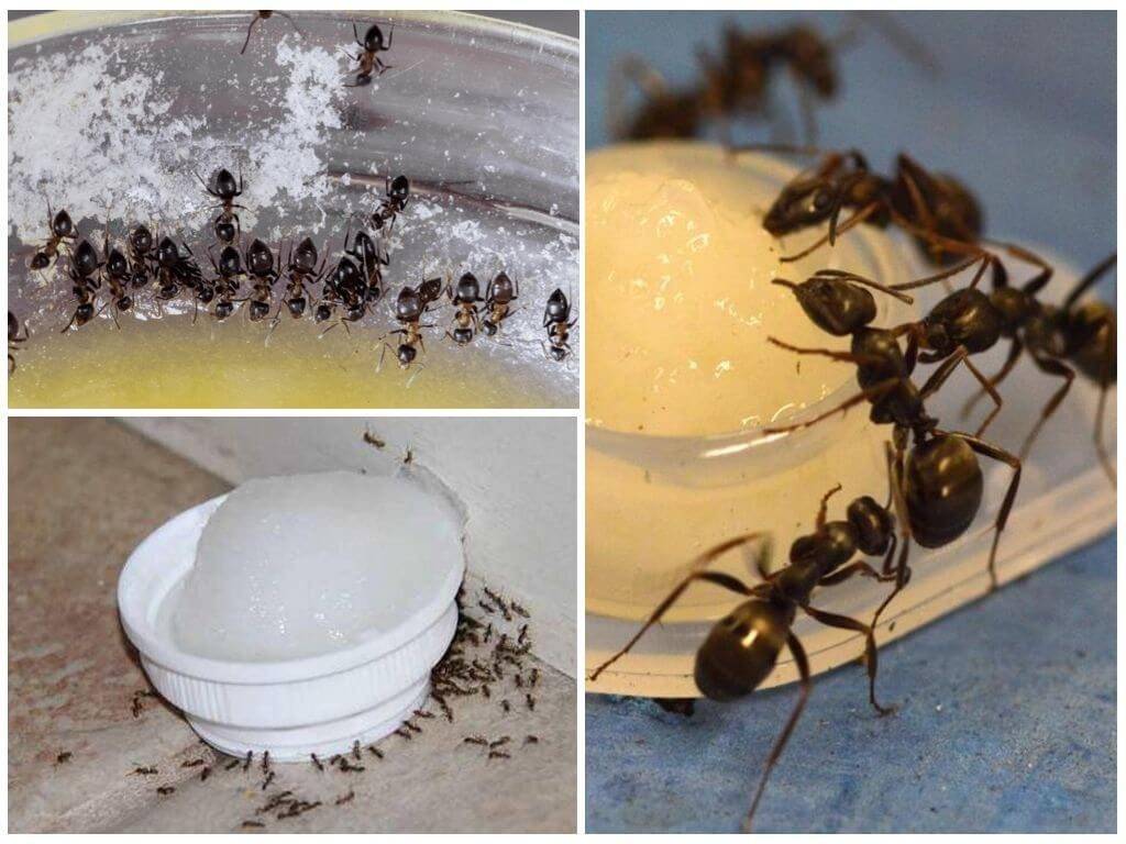 Второй способ – разложить приманку, которую муравьи принимают за пищу и относят в муравейник, заражая поочередно всех особей. Этот метод наиболее эффективный, так как позволяет устранить матку и основную массу рабочих муравьев.