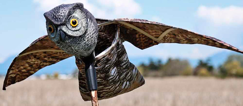 Такими средствами могут быть обычные пугала в виде человеческой фигуры или макеты, имитирующие хищников. Наиболее современными считаются правдоподобные фигуры хищных птиц с функцией движения.
