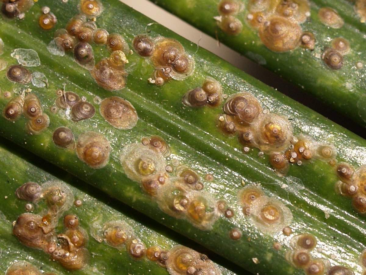 Пальмовые – полупрозрачный щиток серовато-беловатого цвета, размер не более 2 мм. Поражает пальмы, драцены, орхидеи и бромелиевые. Особенным деликатесом для нее являются молоденькие побеги веерных пальм.