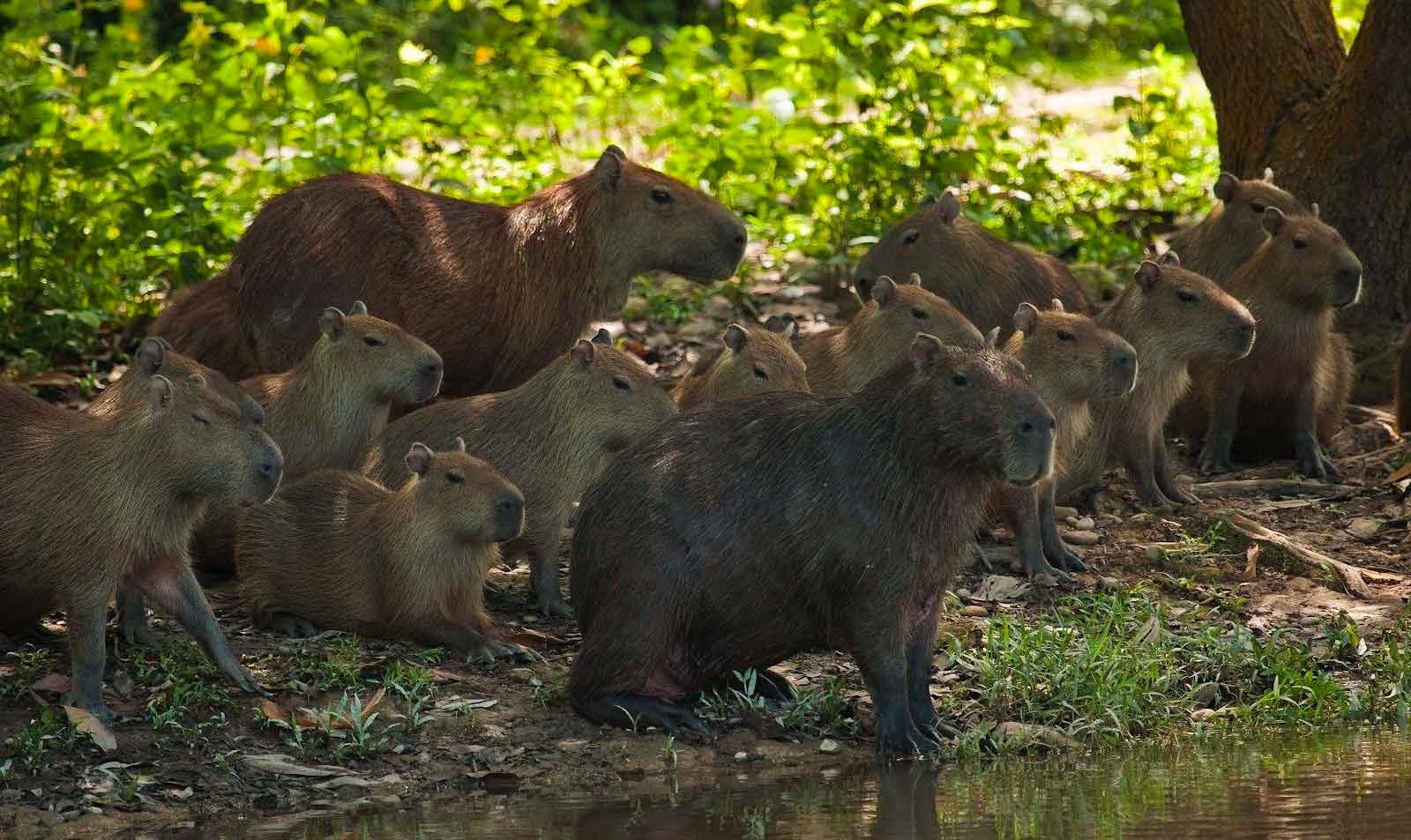 Капибара – коллективное животное. Оно не может жить отдельно от группы. Семья обычно насчитывает около 20 особей. 6 – 8 самок и детеныши группируются вокруг доминирующего самца.