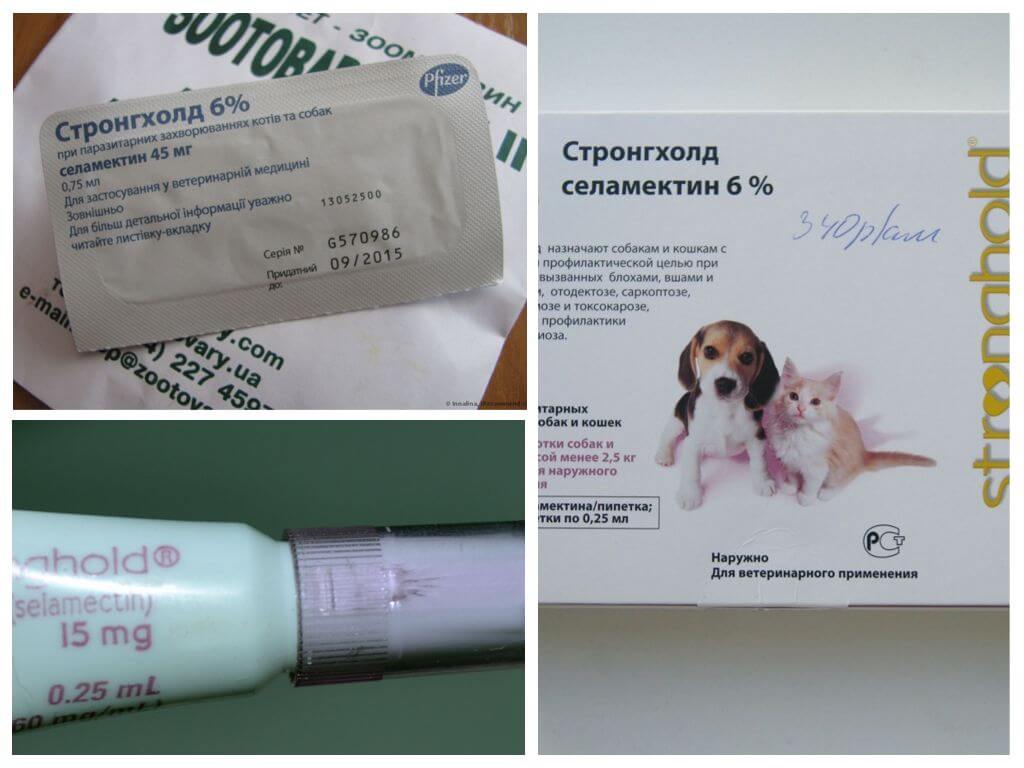 Для лечения ушной чесотки (отодектоз) стронгхолд применяется однократно с регулярной очисткой слухового прохода от скопления экссудатов и струпьев. При необходимости лечебный курс повторяется через месяц. Терапия саркоптоза требует двукратного применения средства с месячным интервалом.