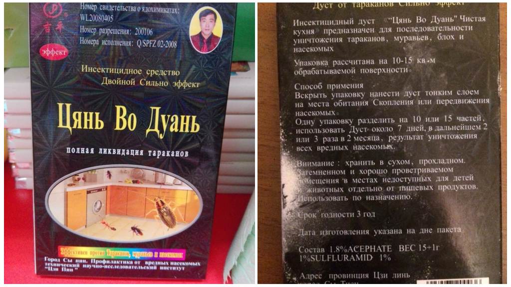 Отдельно стоит выделить китайский порошок от вредителей Цянь Во Дуань («Чистая кухня»), который среди русскоязычных потребителей получил название «порошок в чёрной коробочке».