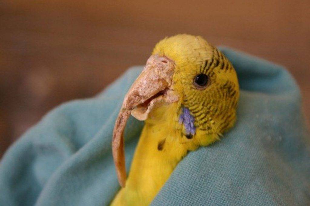- Тяжёлая. Наблюдается глобальное облысение, на проплешинах струпья, клюв кривой и изогнут в сторону, суставы на лапах воспалены. Питомец престаёт есть и пить, не реагирует на звуки и внешние раздражители. Полностью заражение организма происходит за полгода. Если не проявить осмотрительность, то у птицы начнут отмирать ткани внутренних органов и конечности, после чего она гибнет.