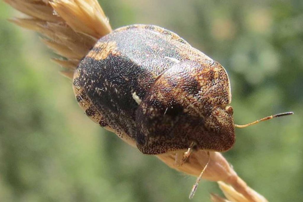 - Вредная черепашка полностью оправдывает свое название: выглядит как миниатюрная рептилия, ее тело с характерным коричнево-бронзовым рисунком похоже на панцирь. Размеры имаго не превышают 1-1,3 см. Паразит предпочитает злаковые культуры. Повреждая стебли пшеницы, он впрыскивает слюну, которая провоцирует недоразвитие зерен. В период миграции вредные черепашки могут перелетать на большие расстояния (до 50 км). При недостатке питания наносят вред и другим садово-огородным растениям.