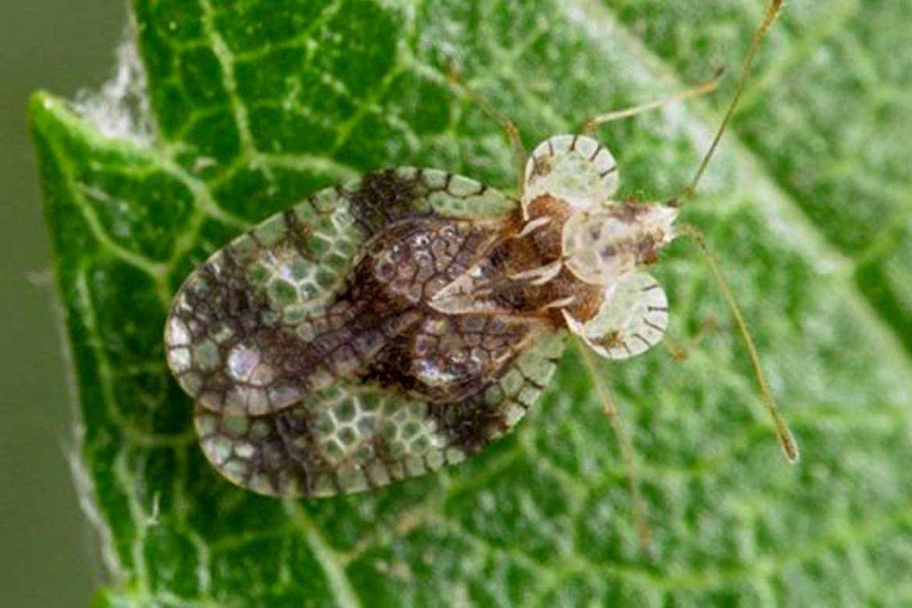 - Грушевая кружевница миниатюрна – всего 2,8-3,3 мм. Ее тело и крылья окрашены в невзрачный бежевый цвет, покрыты ажурной сеткой из полупрозрачных ячеек. Плодовитый паразит обитает на лиственных и плодовых деревьях. Чаще всего от него страдают груша, слива, яблоня, липа, абрикос.