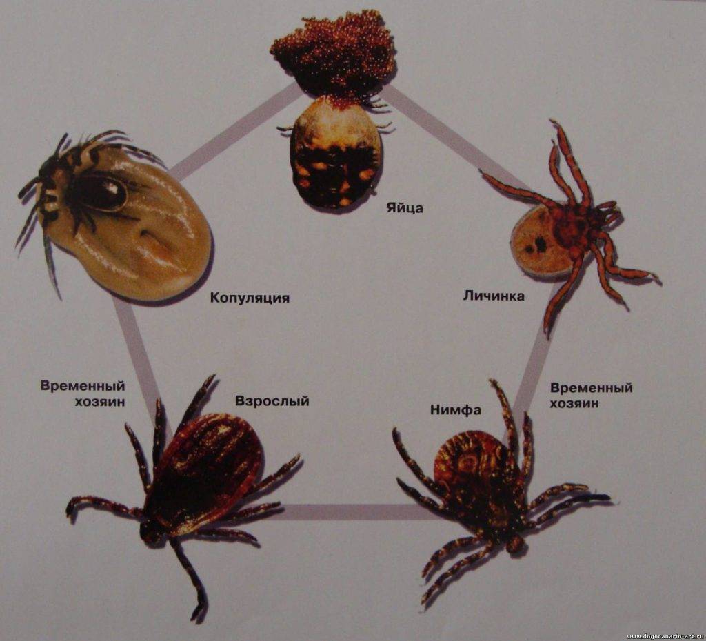 Развитие разных стадий клеща требуют времени. Прежде всего, скорость зависит от климатических факторов: температура и влажность. Если личинка не успела насытиться до наступления холода, то она просто уходит на зимовку, затаившись в гнезде или перегнившей листве. Самый пик активности особей, не достигших половозрелого возраста — осень. Если они не успели напасть на жертву до зимы, то таким периодом выступает весна. В связи с этим лето на самом деле не самый пик активности. Но это касается средней полосы. После того как личинка стала нимфой развитие до половозрелой особи происходит очень быстро.