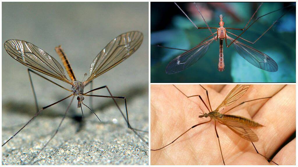 Речь идет о болотной «балеринке» и капустной долгоножке. Болотная долгоножка или балеринка отличается ярким окрасом и длинными лапами. Она называется «болотной» из-за среды обитания. Тельце двухцветное, некоторые сегменты окрашены в ярко-оранжевый цвет. Рацион состоит из зерновых культур, овощей и хмеля, поэтому комар-долгоножка приносит ощутимый вред сельскому хозяйству.