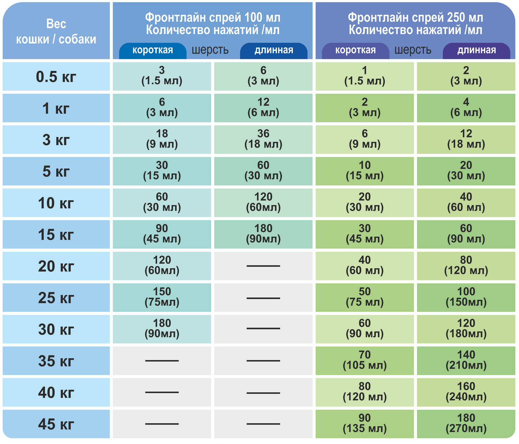 Расчет дозировки на примере препарата Фронтлайн Спрей