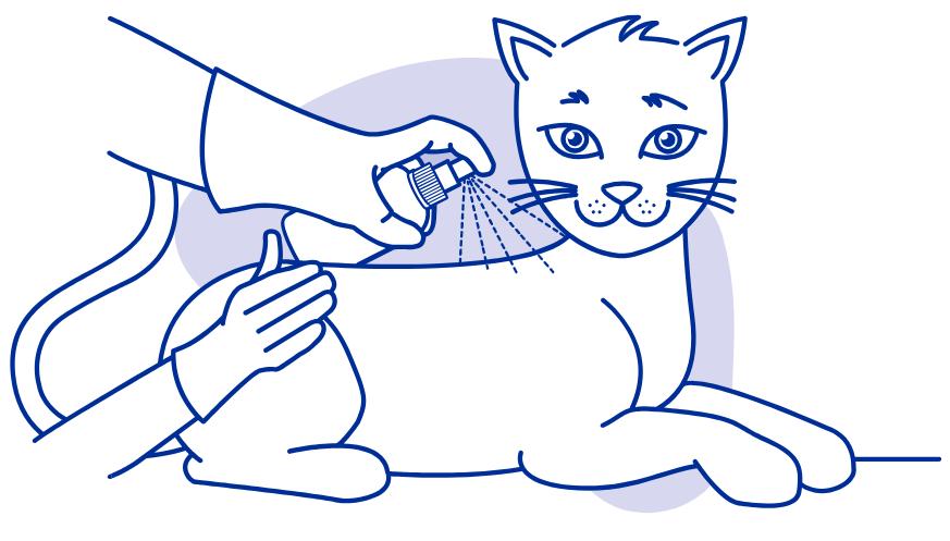 Держа баллончик со спреем на расстоянии 10 см от тела кошки, его аккуратно распределяют по шерсти, начиная с шеи, спины и хвоста. В последнюю очередь обрабатывают живот, лапы, голову. После нанесения надо дать средству высохнуть в течение 15-20 минут. Чтобы кошка не вылизывала шерсть, на нее надевают защитный воротник или отвлекают животное лакомством.