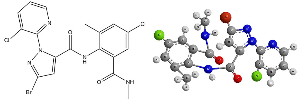 Химическая формула хлорантранилипрола — действующего вещества инсектицида Кораген