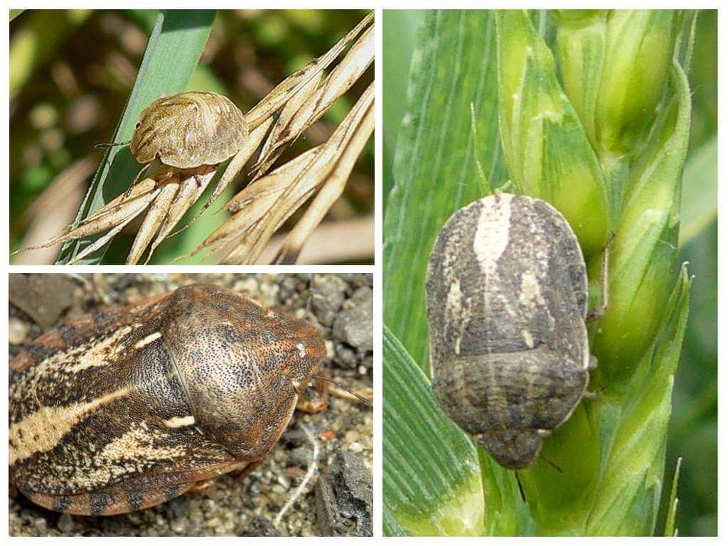 - Вредная черепашка полностью оправдывает свое название: выглядит как миниатюрная рептилия, ее тело с характерным коричнево-бронзовым рисунком похоже на панцирь. Размеры имаго не превышают 1-1,3 см. Паразит предпочитает злаковые культуры. Повреждая стебли пшеницы, он впрыскивает слюну, которая провоцирует недоразвитие зерен. В период миграции вредные черепашки могут перелетать на большие расстояния (до 50 км). При недостатке питания наносят вред и другим садово-огородным растениям.