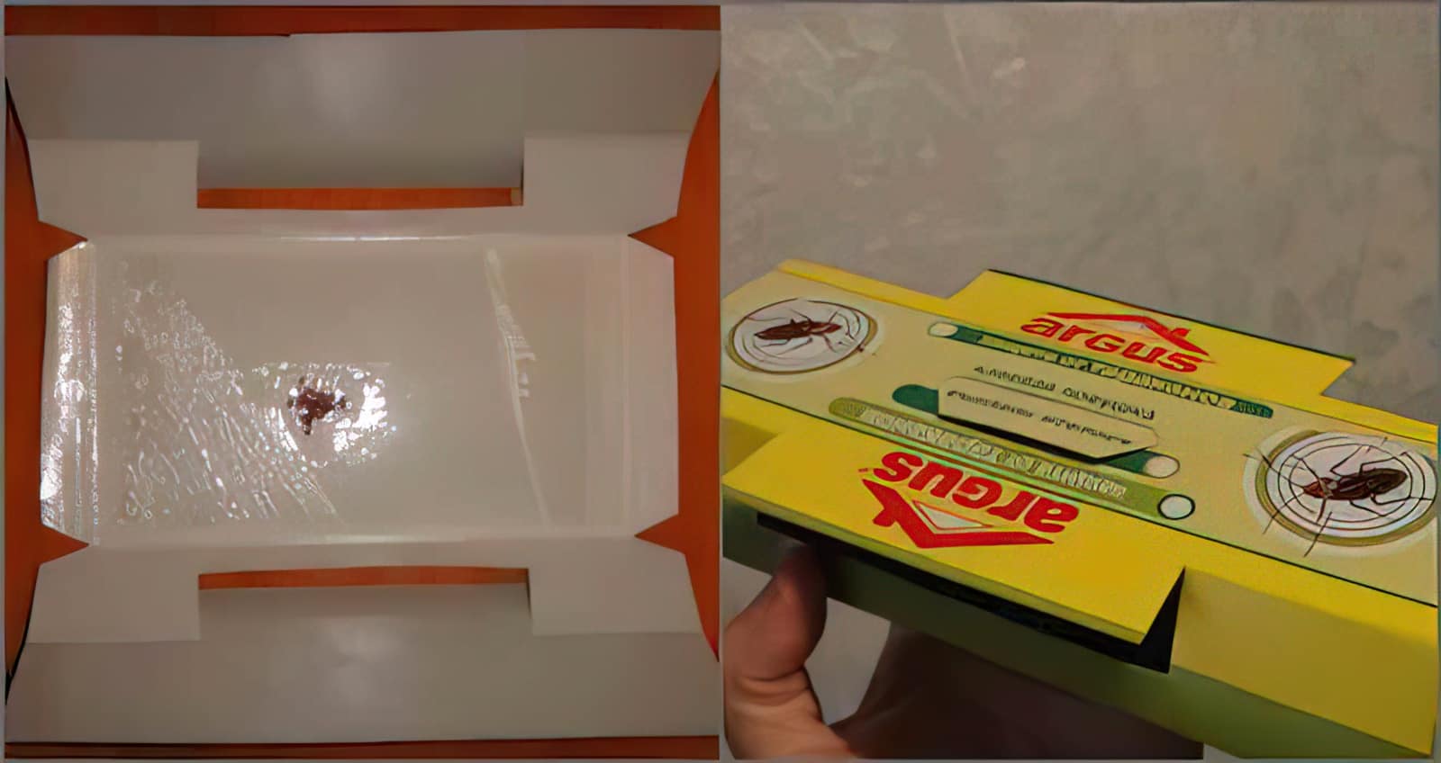 Особенность клеевой ловушки Argus — включение ароматической приманки в состав липкого слоя. Она выглядит как картонный домик с отверстиями. Тараканы, почуяв запах, пробираются внутрь ловушки и увязают лапками в клейком слое.