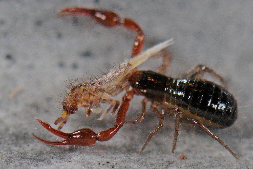 Случайное столкновение на территории, которую насекомое и человек считают своей, не должно вызывать паники. В конце концов, это же не настоящий ядовитый скорпион, от охотника за пылевыми клещами не исходит опасность быть ужаленным. Скорее всего, лжескорпион тоже будет напуган. Не успев убежать, он наверняка притворится мертвым.