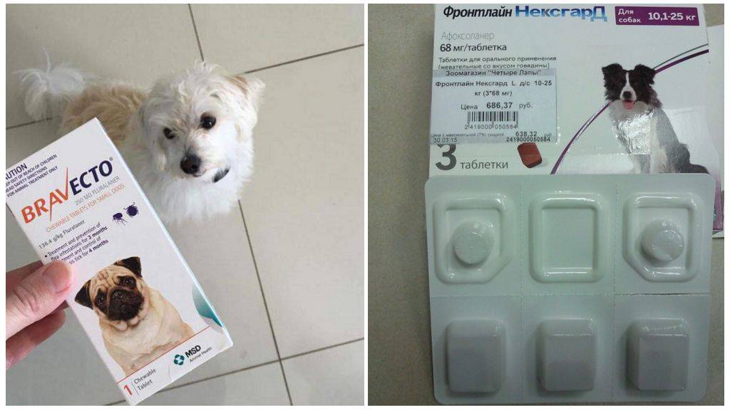 - Фронтлайн НексгарД. Жевательные таблетки с приятным вкусом используются для борьбы с клещами и блохами. Препарат начинает действовать через 30 минут после приема и через 2 дня все паразиты будут уничтожены. Эффект защиты сохраняется в течение месяца. Стоимость – 1600 рублей.