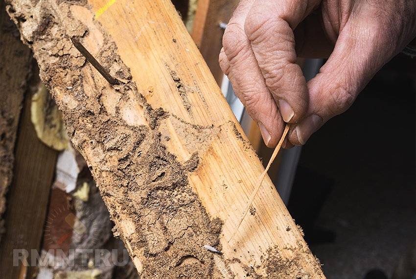 Самый страшный бич древесины — термит, короед и шашель (древоточник). Древесные жуки действуют стремительно и приводят древесину в негодность за 2-3 сезона. Колония термитов уничтожает стропильную систему за 1-2 сезона. Именно из-за скорости передвижения и всеядности древесные жуки могут быть «заразными», т. е. переходить на чистый незаражённый лес и откладывать личинки.