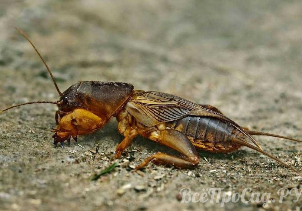 Одними из самых крупных садовых насекомых-вредителей, обитающих под землей, являются медведки. Они имеют крупное тело (до 6 см длиной) темно-коричневого окраса, оснащенное копательными передними лапками. Способны подрезать все подземные части садово-огородных культур, включая картофельные клубни и корни деревьев.