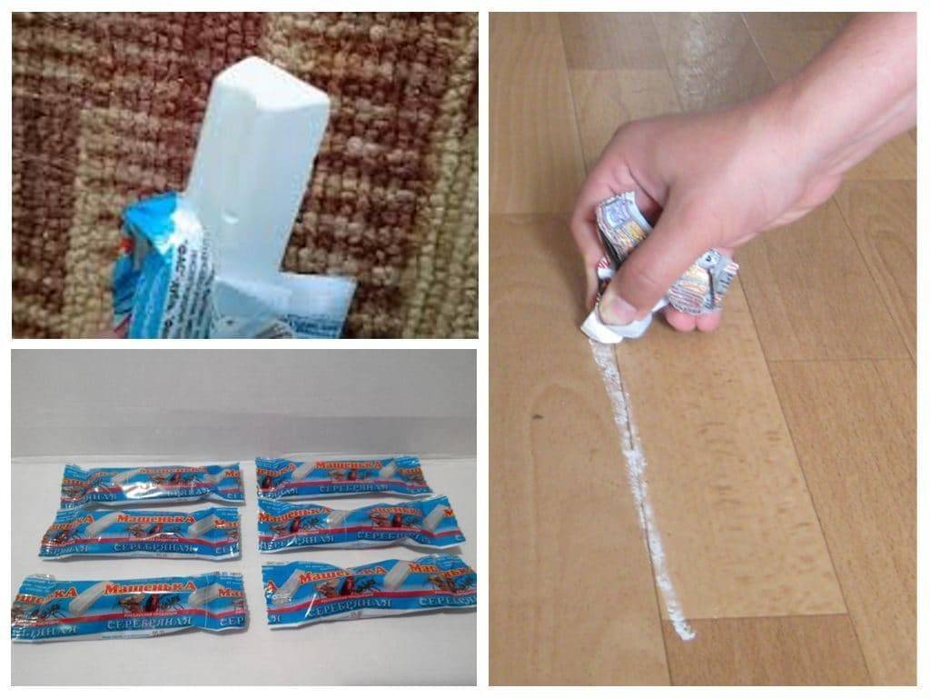 Мелок «Машенька» может спасти вас и от муравьев. Если насекомые атаковали вашу квартиру, проведите полосы по всему периметру помещения, как от тараканов. Посмотрите, где проходят тропинки муравьев: эти насекомые обычно не бегают хаотично, а передвигаются по одному и тому же маршруту. Прочертите полосы на их дорожках, чтобы насекомые обязательно наступили на яд. Можете капнуть на полоски сахарный сироп, мед, или какое-нибудь другое привлекательное для паразитов лакомство.