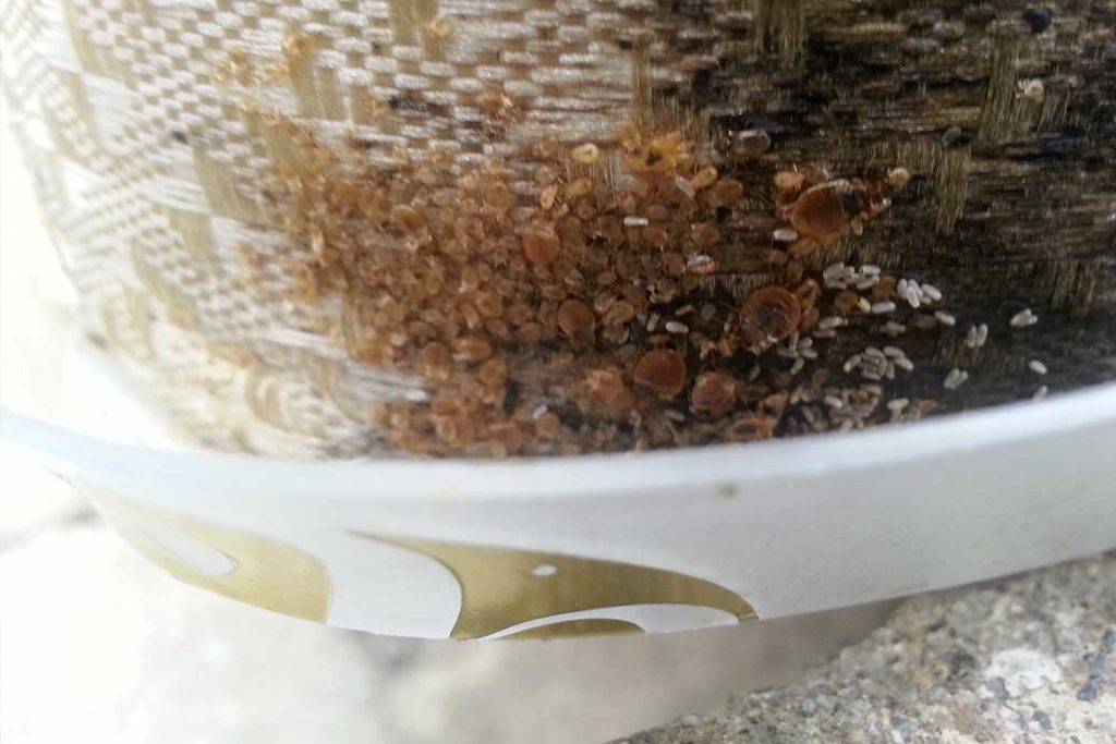 Тело личинки клопа покрывает прочный хитиновый панцирь, выполняющий функции наружного скелета. По мере роста насекомое периодически сбрасывает его. Такой процесс еще называют линькой. Поэтому наличие пустых хитиновых чешуек является еще одним верным признаком присутствия клопов в квартире.