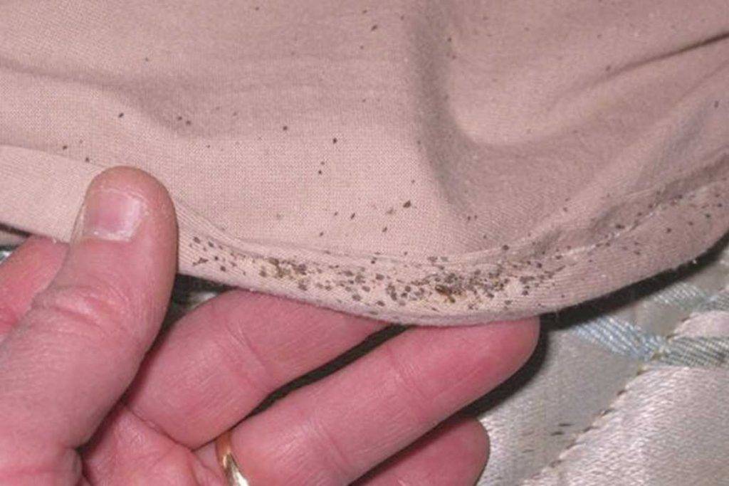 - следы жизнедеятельности насекомых, напоминающие точки темного цвета, на поверхности постели;