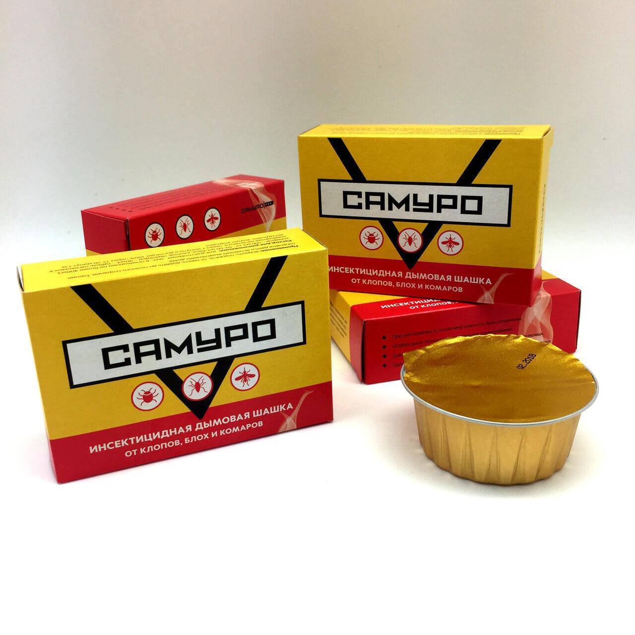 Современный препарат широкого спектра. Можно использовать в быту против мокриц, клопов, тараканов, муравьев, пылевых клещей и клопов. Самуро тлеет, но не горит, что полностью исключает риск пожара. Выделяемый дым проникает даже в самые маленькие щели и не имеет запаха.