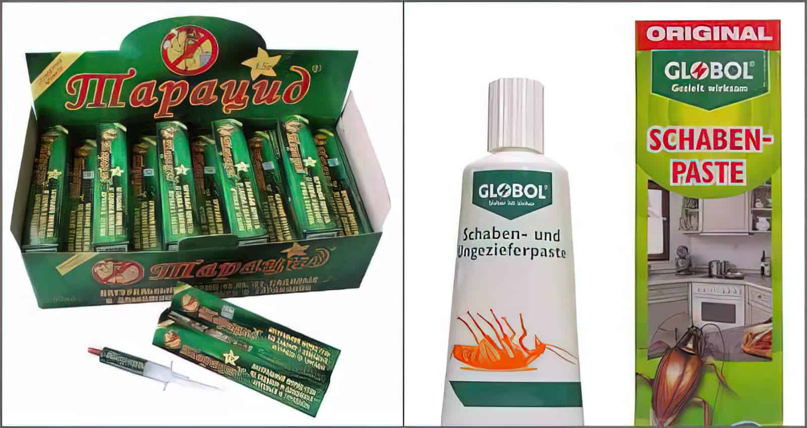 Украина предлагает приманку с борной кислотой в основе — Тарацид. В веществе, кроме особо токсичной кислоты, находятся высушенные болиголов и живокость.