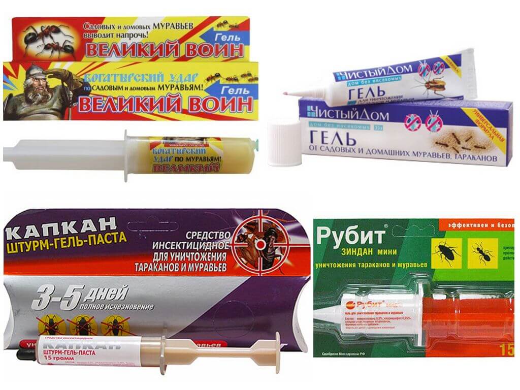 Очень эффективны и популярны такие гели от муравьёв, как Глобал, Рубит, Домовой, Раптор.