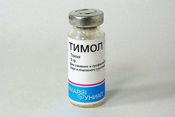 Тимол считается безопасным для пчел, трутней и матки, но применять его следует за 7 дней до откачки меда и сбора других продуктов пчеловодства. Это средство эффективно не только против клещей, но и против ряда бактериальных и грибковых инфекций.