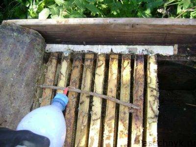 Опрыскивать отваром необходимо все в улье пчел, рамки и расплод. Сделать это следует от трех до пяти раз, с недельным временным промежутком.