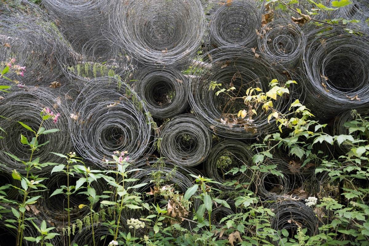 По периметру земельного участка надо воткнуть палки, располагая по несколько опор в одном месте. На них надо надеть пустые пластиковые бутылки или пивные банки