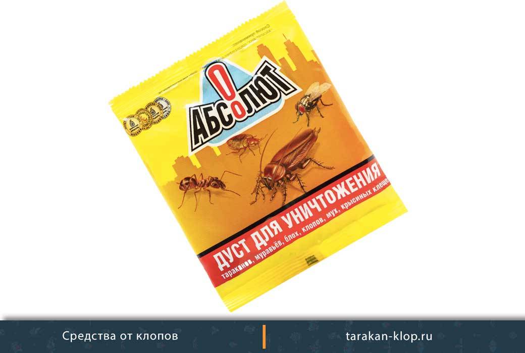 Абсолют – порошок на основе фентиона и дельтатметрина. От этих веществ кровосос гибнет за несколько секунд. Это достаточно экономичное средство: 50 граммов стоит 20 рублей. Обычно такого пакетика хватает даже на повторную обработку квартиры. Смешивать с водой порошок не нужно. Среди недостатков – неприятный запах, который может вызвать головокружение, а также необходимость длительного применения.
