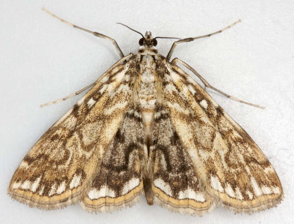 Важно! Одно поколение бабочек-вредителей проходит полную фазу развития за год. На фото взрослая особь крыжовниковой огневки: