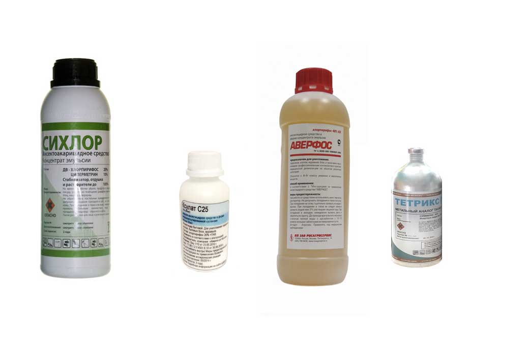 Самыми сильными средствами являются химикаты, которые принято распылять в санитарных службах. В любом хозмаге такие инсектициды не купить, да и применять самостоятельно не стоит: слишком высока опасность отравиться. Если у дезинсектора есть опыт и уверенность в том, что все будет сделано правильно, можно попробовать приобрести яды в СЭС. Вот несколько самых действенных препаратов: