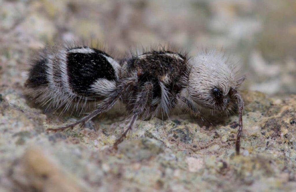 Бархатный муравей или «панда» выглядит, как пушистая игрушка. У него имеется опушка черно-белого цвета, но это наиболее часто встречающийся вид, есть также насекомые с желтыми, красными, оранжевыми вставками. Истинное название панды – оса-немка. Характерные признаки:
