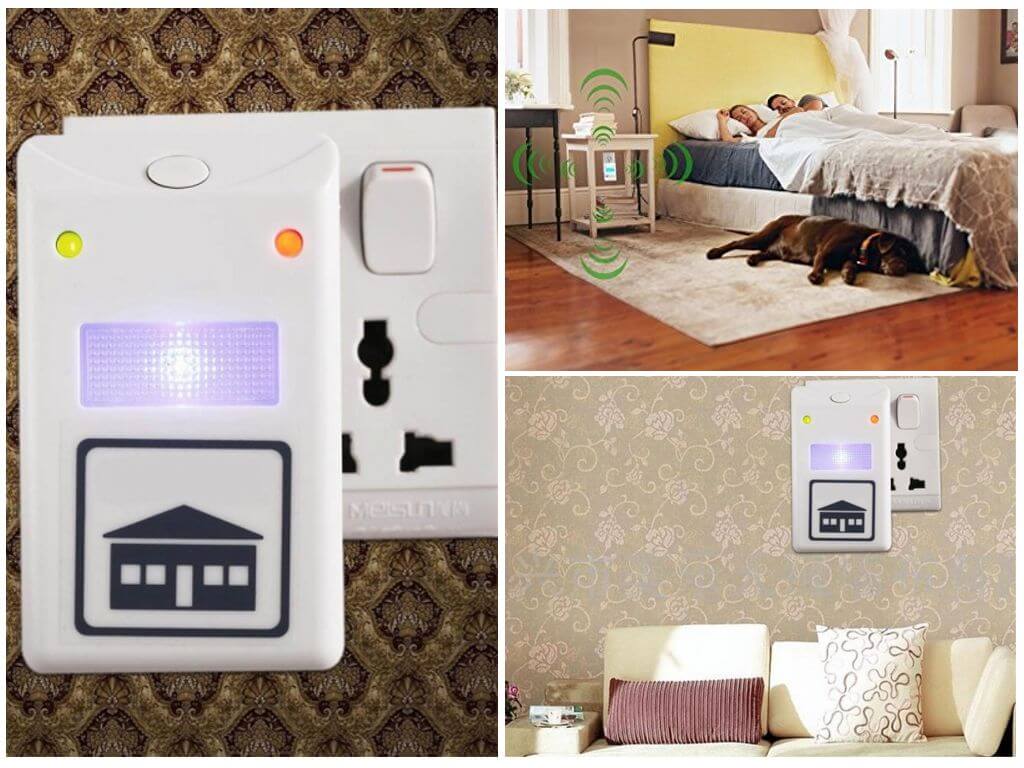 Электронные отпугиватели тоже работают от электричества. Они тоже вырабатывают высокочастотные акустические волны, которыми воздействуют на вредителей. Но при включении прибора вся электрическая сеть дома начинает работать как один большой отпугиватель. Поэтому его нужно включать в центре дома. Стены комнат уже не стоят на пути ультразвуковых волн.