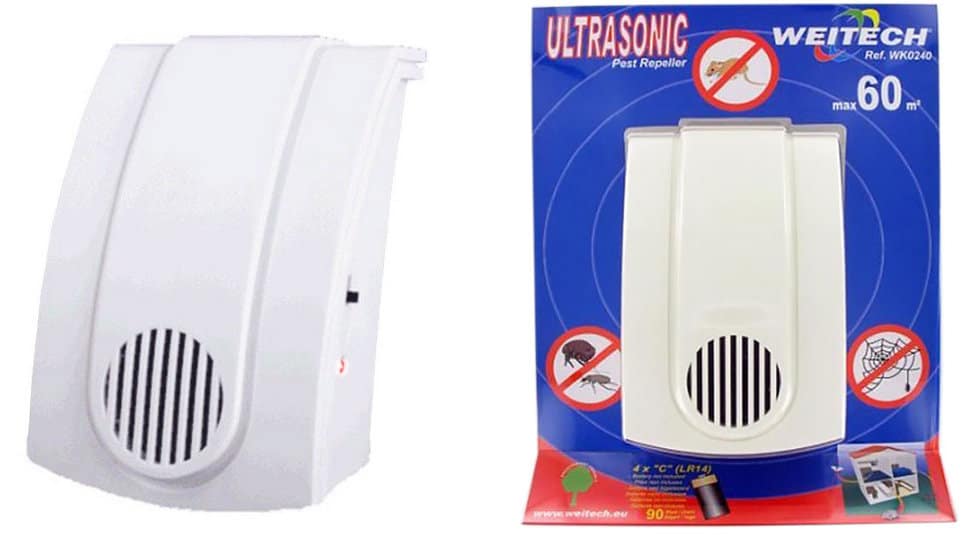 - Ультразвуковое устройство от комаров «Weitech WK0029» от бельгийских производителей. Эта модель сможет защитить вас от комаров как дома, так и на улице. Его можно взять с собой на отдых, в поход или на дачу и надоедливые насекомые не станут вас беспокоить. Несмотря на свои небольшие габариты покрывает территорию площадью около 50 м2. Частота звуковых волн составляет от 30 до 40 кГц.