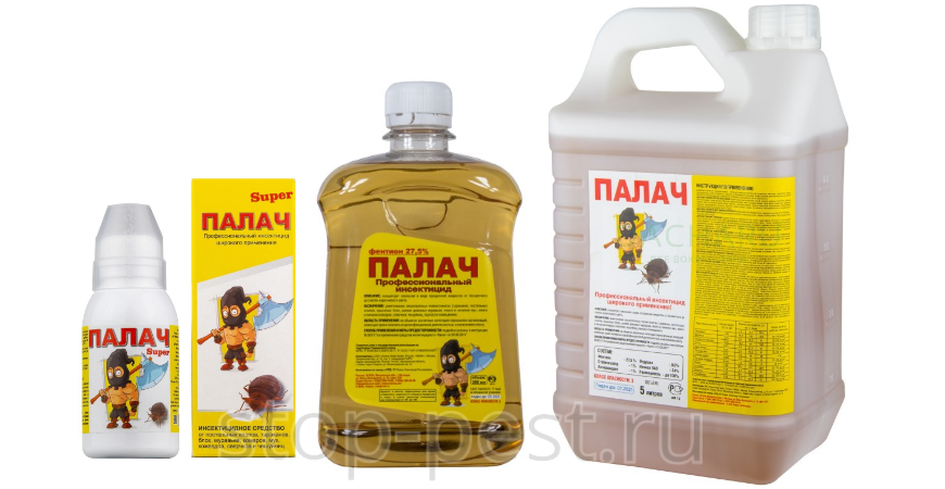 Избавится раз и навсегда от назойливых клопов мечтает каждый владелец квартиры, который столкнулся с их нашествием. Ключевым компонентом препарата с названием Палач является сложное по составу фосфорорганическое вещество фентион – он представлен в количестве 25%.