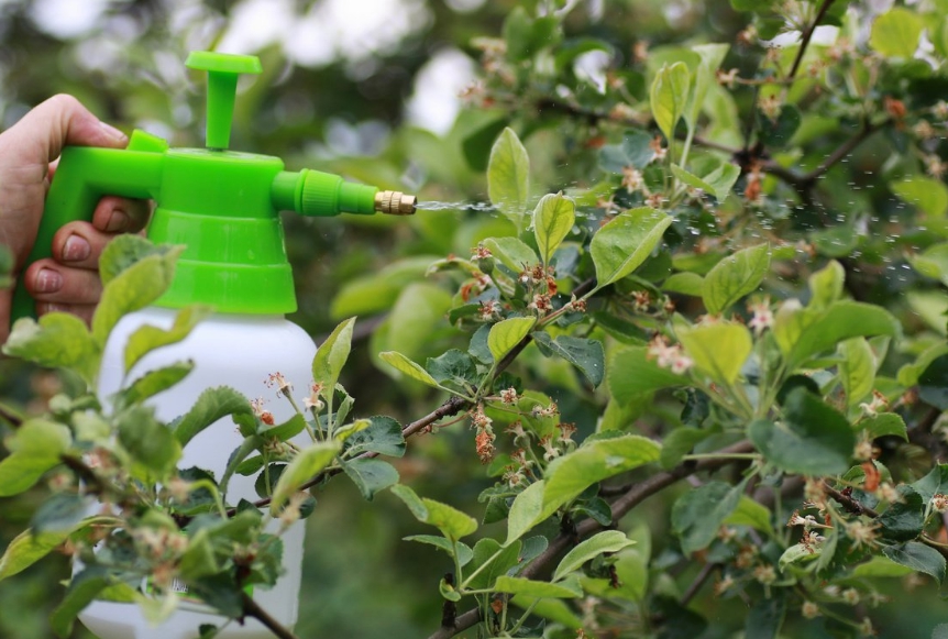 Нужно использовать мелкодисперсный распылитель, чтобы обработать нижнюю часть листовой пластинки.